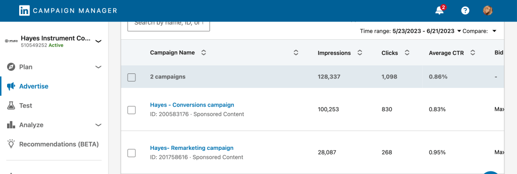 Client: Hayes Instruments – LinkedIn Advertising