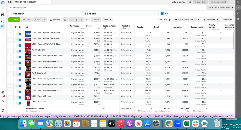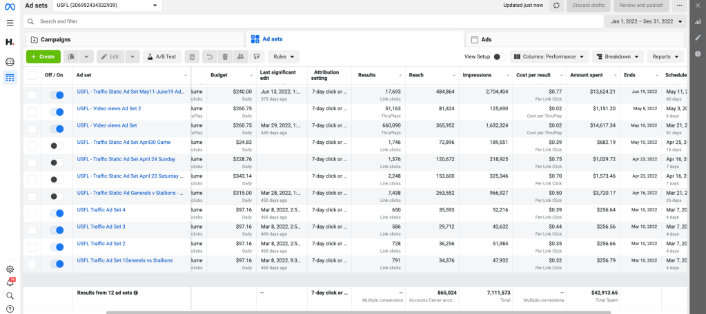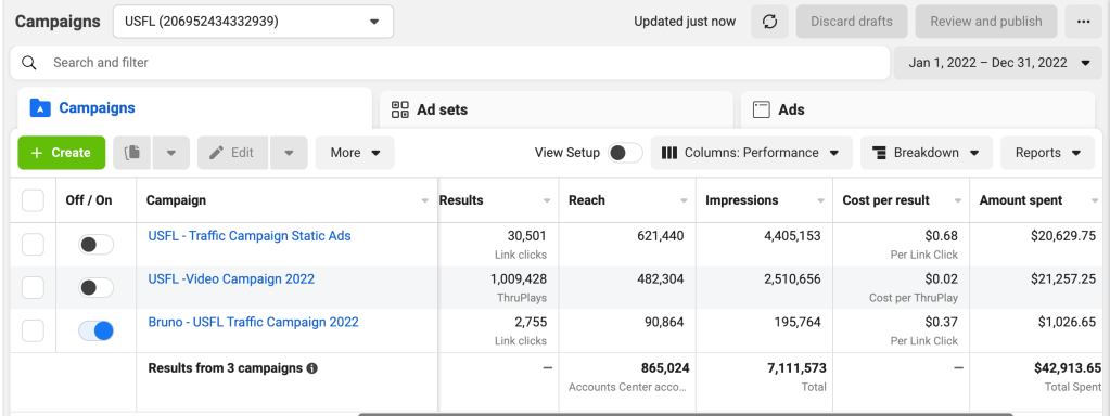 Client: USFL – Facebook Advertising